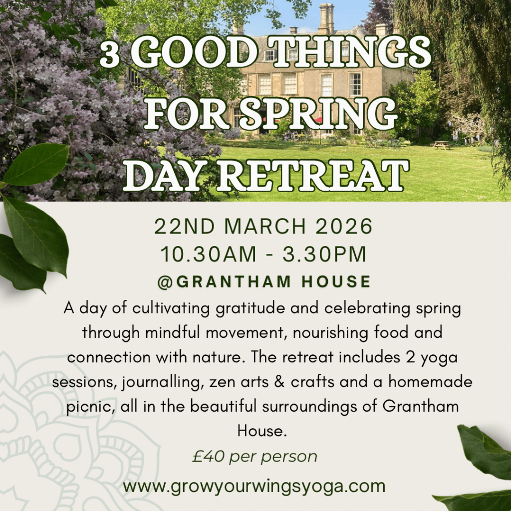 5 hours to escape from the hectic digital world, to slow down and appreciate our natural world as it starts to awaken after a long winter, on this retreat inside the walled garden of Grantham House. We will start the day with an energising vinyasa yoga class, then take a mindful walk around the grounds, spotting signs of spring, before finding a moment to pause, reflect and note down the good things we are surrounded by. We will then enjoy a light, nutritious, plant-based picnic/afternoon tea and explore our creative side with some mindful arts & crafts and finally create connection through partner yoga and massage to finish the day feeling rested, restored and ready for the week ahead.