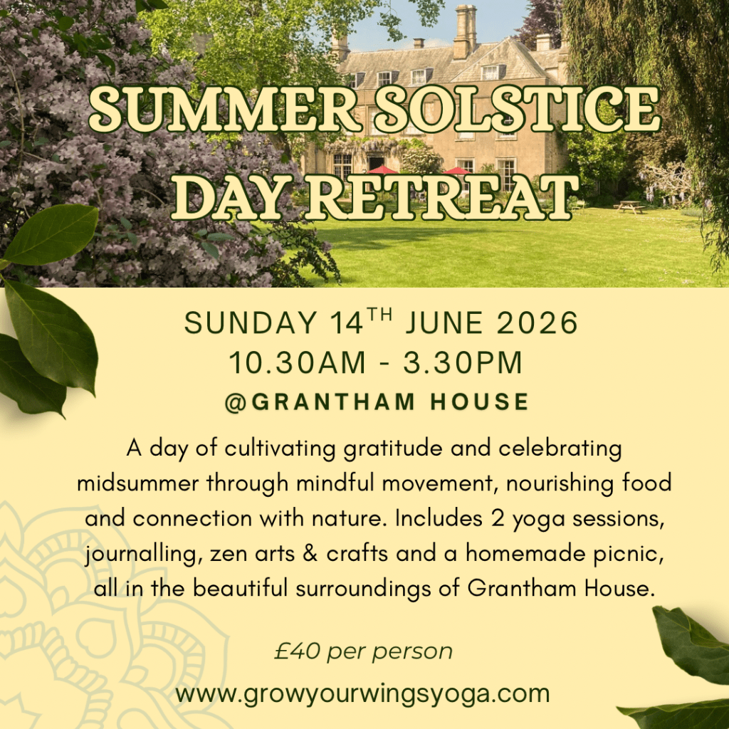 5 hours to escape from the hectic digital world, to slow down and appreciate our natural world at its most vibrant, on this retreat inside the walled garden of Grantham House. We will start the day with an energising vinyasa yoga class, then take a mindful walk around the grounds, spotting all the flowers in full bloom, before finding a moment to pause, reflect and note down the good things we are surrounded by. We will then enjoy a light, nutritious, plant-based picnic/afternoon tea and explore our creative side with some mindful arts & crafts and finally create connection through partner yoga and massage to finish the day feeling rested, restored and ready for the week ahead.