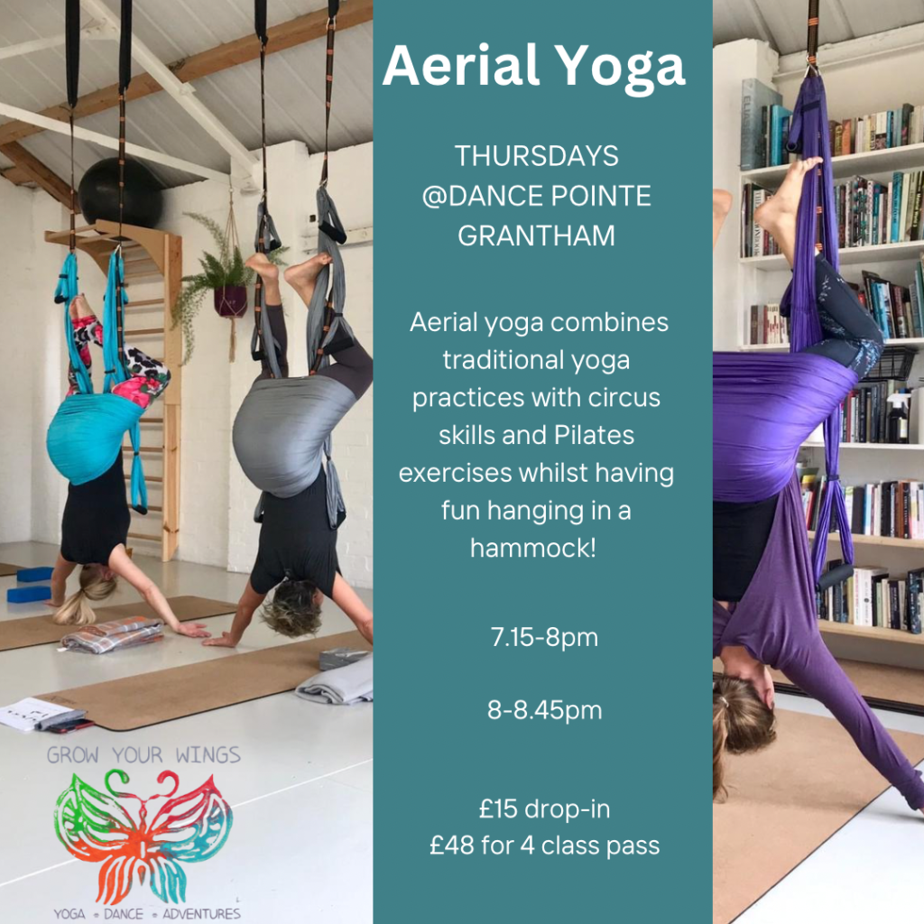 Aerial Yoga combines traditional yoga poses, Pilates, circus and dance with the use of a silk-style hammock to support and cradle the body, taking you through yoga postures and allowing you to get upside down without putting pressure on the hands or head.