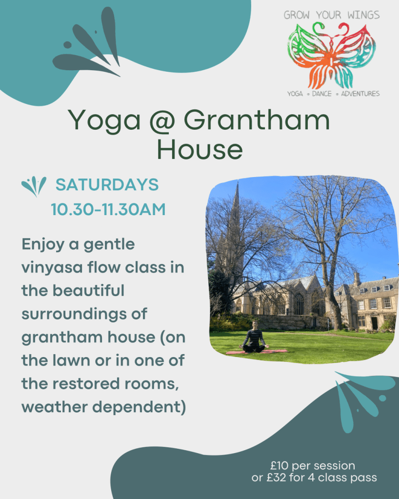 A chance to practice yoga in Grantham’s beautiful, historic and newly refurbished National Trust property. Come rain or shine we will take inspiration from the splendid, peaceful surroundings as we flow through sequences of mindful movement and breathe in the fresh air or enjoy the view from the Georgian windows. A perfect start to the weekend!